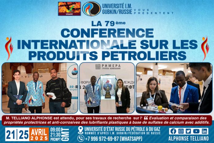 M. Alphonse Telliano, enseignant-chercheur à l’Université Gamal Abder Nasser de Conakry (UGANC), se prépare à participer à la prestigieuse 79ème Conférence Internationale sur les Produits Pétroliers, qui se déroulera du 21 au 23 avril 2025 à l’Université d’État russe du pétrole et du gaz I.M. Gubkin à Moscou, en Russie. Cette opportunité unique s’offre à lui grâce au soutien du Ministère de l’Enseignement Supérieur, de la Recherche et de l’Innovation.
