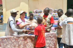 L’initiative est portée par le projet “𝑳𝒂𝒏𝒚𝒊 𝑭𝒂𝒏’’ (𝘓𝘢 𝘱𝘢𝘪𝘹 𝘦𝘴𝘵 𝘣𝘰𝘯𝘯𝘦), mis en œuvre par 𝒍’𝑶𝑵𝑮 𝑻𝒆𝒓𝒓𝒆 𝒅𝒆𝒔 𝑯𝒐𝒎𝒎𝒆𝒔 𝒂𝒗𝒆𝒄 𝒖𝒏 𝒔𝒐𝒖𝒕𝒊𝒆𝒏 𝒇𝒊𝒏𝒂𝒏𝒄𝒊𝒆𝒓 𝒅𝒆 𝒍’𝑼𝒏𝒊𝒐𝒏 𝒆𝒖𝒓𝒐𝒑𝒆́𝒆𝒏𝒏𝒆. La cérémonie, présidée par la Direction nationale de l’Éducation surveillée du Ministère de la Justice et des Droits de l’Homme. Ce don était composé de vêtements pour adultes et enfants, du matériels de sport, de la literie, des articles d’hygiène, ainsi que du mobilier et des équipements pour la salle informatique des mineurs.
