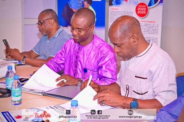 Le 11 juillet 2025, la salle de réunion du projet Santé Plus à Koloma a accueilli la cérémonie officielle de signature d’une convention de partenariat tripartite entre le Laboratoire Central Vétérinaire de Diagnostic (LCVD), la Direction Nationale des Services Vétérinaires (DNSV) et l’Association Santé Plus. Cet accord vise à renforcer la lutte contre la grippe aviaire en Guinée en améliorant la coordination des actions, en soutenant la recherche et en renforçant la surveillance épidémiologique.
