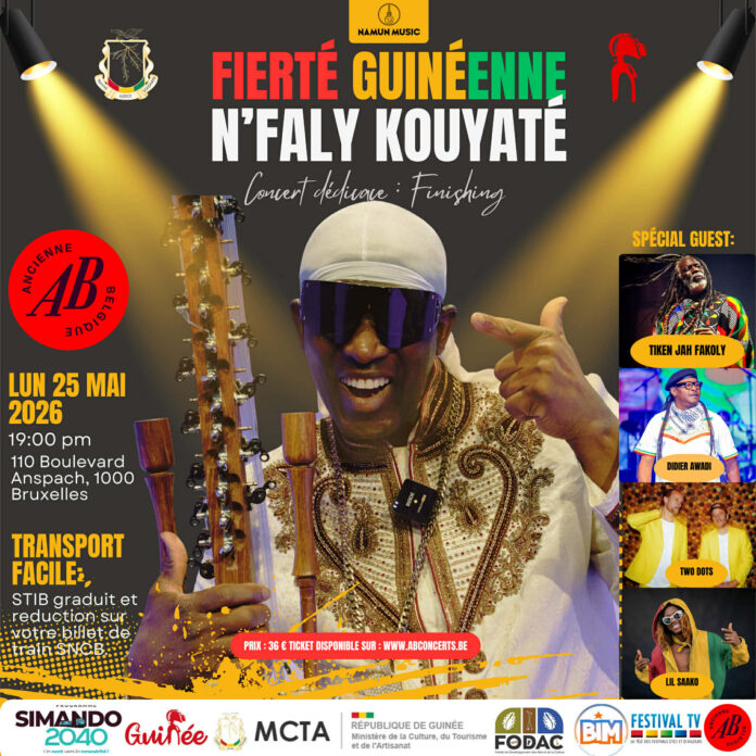 La capitale belge s’apprête à vibrer au rythme de la musique guinéenne. Le lundi 25 mai 2026 à 19h, la prestigieuse salle Ancienne Belgique (AB) à Bruxelles accueillera le concert événement de la Fierté Guinéenne, la superstar N’Faly Kouyaté, artiste international et ambassadeur du rayonnement culturel de la Guinée.